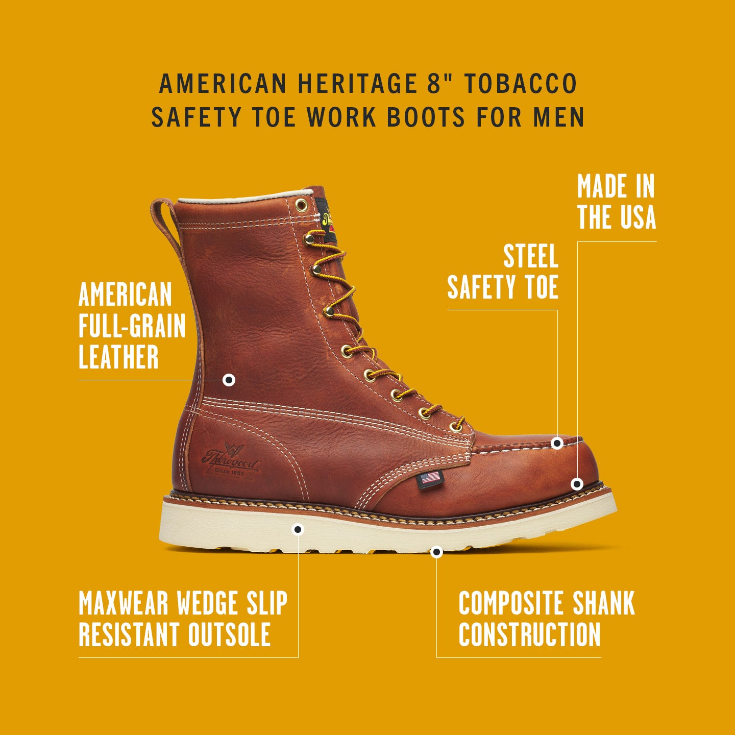 Thorogood American Heritage 8" Tobacco Safety Toe Work Boots for Men