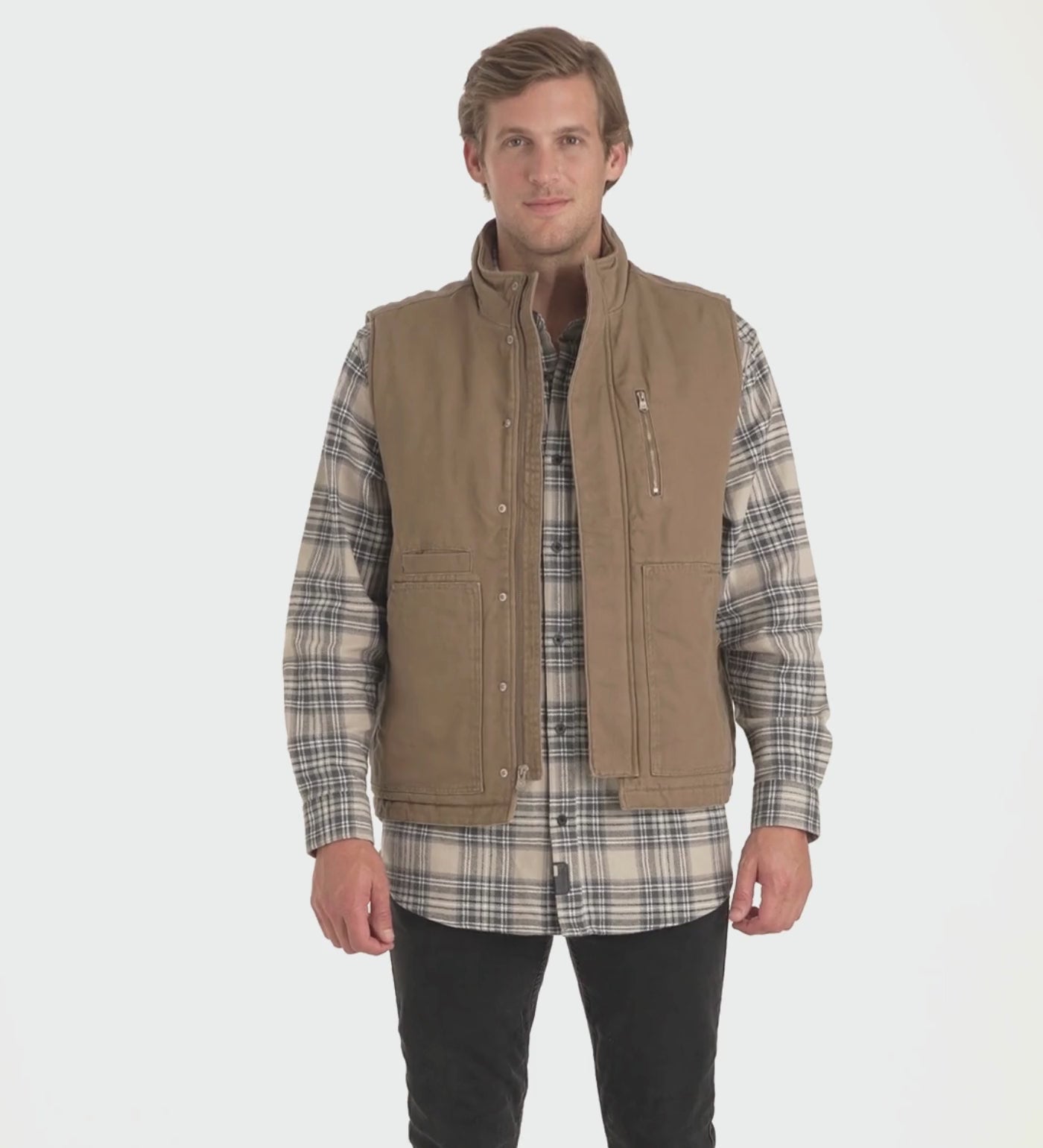 The time has come for a vest that was made for work, not just appearances. Made from 100% cotton duck canvas, the Thorogood Heritage Stone Washed Canvas Vest is durable, water resistant, and comfortable, making it the ultimate rugged travel companion.